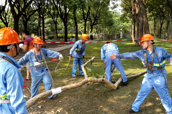 每年的防臺防汛期間,上海市園林綠化界都要開展一次“大練兵”來應(yīng)對可能出現(xiàn)的臺風(fēng)。今年,上海地區(qū)受超強厄爾尼諾現(xiàn)象的影響,呈現(xiàn)出“降水總量偏多且降水極端性強,盛夏高溫日數(shù)多、強對流天氣偏多”的特點。為此,由上海市綠化和市容管理局于2016年7月15日下午在閔行體育公園組織了“大量樹木倒伏影響交通安全“的實戰(zhàn)演習(xí)。本市20家相關(guān)單位近300人參加了此次防臺防汛演習(xí)。