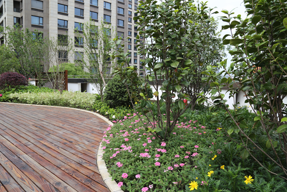 宛南實驗幼兒園位于上海市徐匯區瑞寧路816號,處于徐匯濱江板塊。該工程面積為350平方米。屋頂花園一端以廊架來設置小景,鋪以木結構步道串聯整個花園。另一端則預留一個為小朋友進行園藝蔬菜種植的場所。雖然此花園面積不大,但是和周邊高檔小區的綠化融為一體,得到了幼兒園師生的贊譽和周邊居民的歡迎。