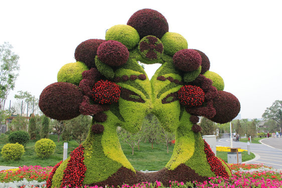 整個園博會公共區域展示做多的、體量最大的、最便于觀賞的依舊是各色立體花壇,他們取材豐富、設計精妙。