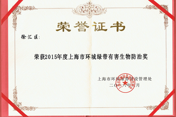 公司獲得“2015年度上海市環城綠帶有害生物防治獎”