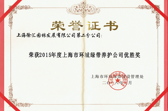 二分公司獲得“2015年度上海市環城綠帶養護公司優勝獎”