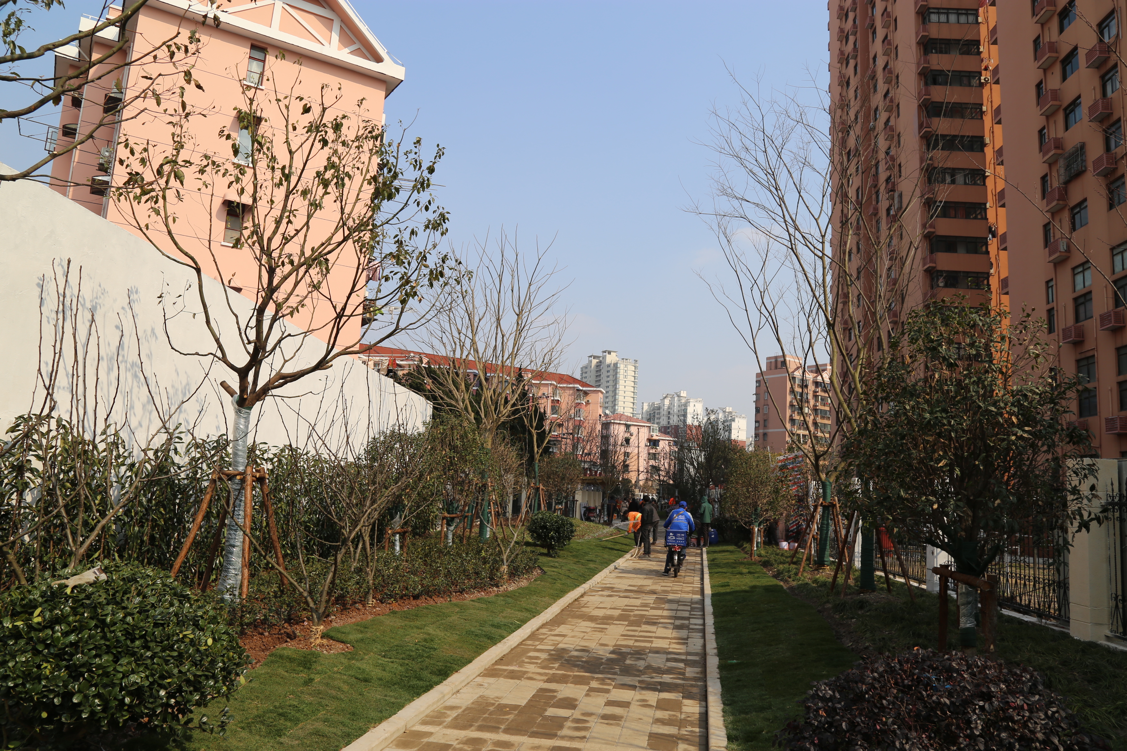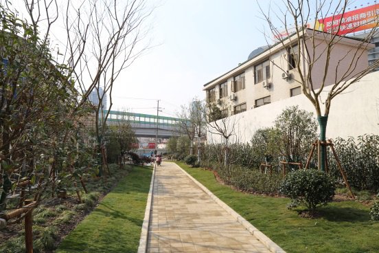改建后該綠地面積約為3000平方米,寬度約12米,總長度約270米。綠地中鋪設一段鐵軌,既豐富了綠地景觀效果又保留了該綠地的歷史底蘊。綠地通過大量的綠化造景手法,通過組合植物和垂直綠化進行體現,讓行人視覺和身心體驗得到滿足,為周邊居民提供了一個散步健身的休閑場所。本工程由一分公司唐登輝團隊負責施工。