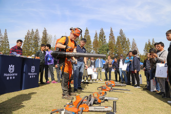 富世華中國區總經理朱總為與會人員介紹了瑞典富世華公司的歷史背景和產品研發。協會的薛秘書長做了活動的致辭,濱江森林公園的養護負責人介紹其公園使用富世華產品的心得體驗。來自富世華的技術經理蔣經理對旗下的汽油產品、電動產品、輪機產品的經典園林機械做了相應的介紹。講座結束以后,與會人員在濱江森林公園的大草坪現場觀摩富世華的產品演示,來自瑞典的產品經理費經理為大家做了深入淺出的介紹,不少同行在費經理的指導下實地試駕了草坪車。整個培訓結束以后,工作室成員對市級公園-上海濱江森林公園進行了專業考察,尤其對杜鵑林下種植、濕地植物配置、花境和花球布置進行了深入的了解。