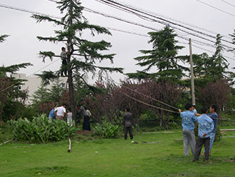 上海徐匯園林發(fā)展有限公司在日常工作中建立快速應(yīng)對(duì)臺(tái)風(fēng)的機(jī)制,每年臺(tái)風(fēng)季之前通過(guò)防臺(tái)防汛的演習(xí)來(lái)強(qiáng)化應(yīng)急隊(duì)伍的實(shí)戰(zhàn)能力。